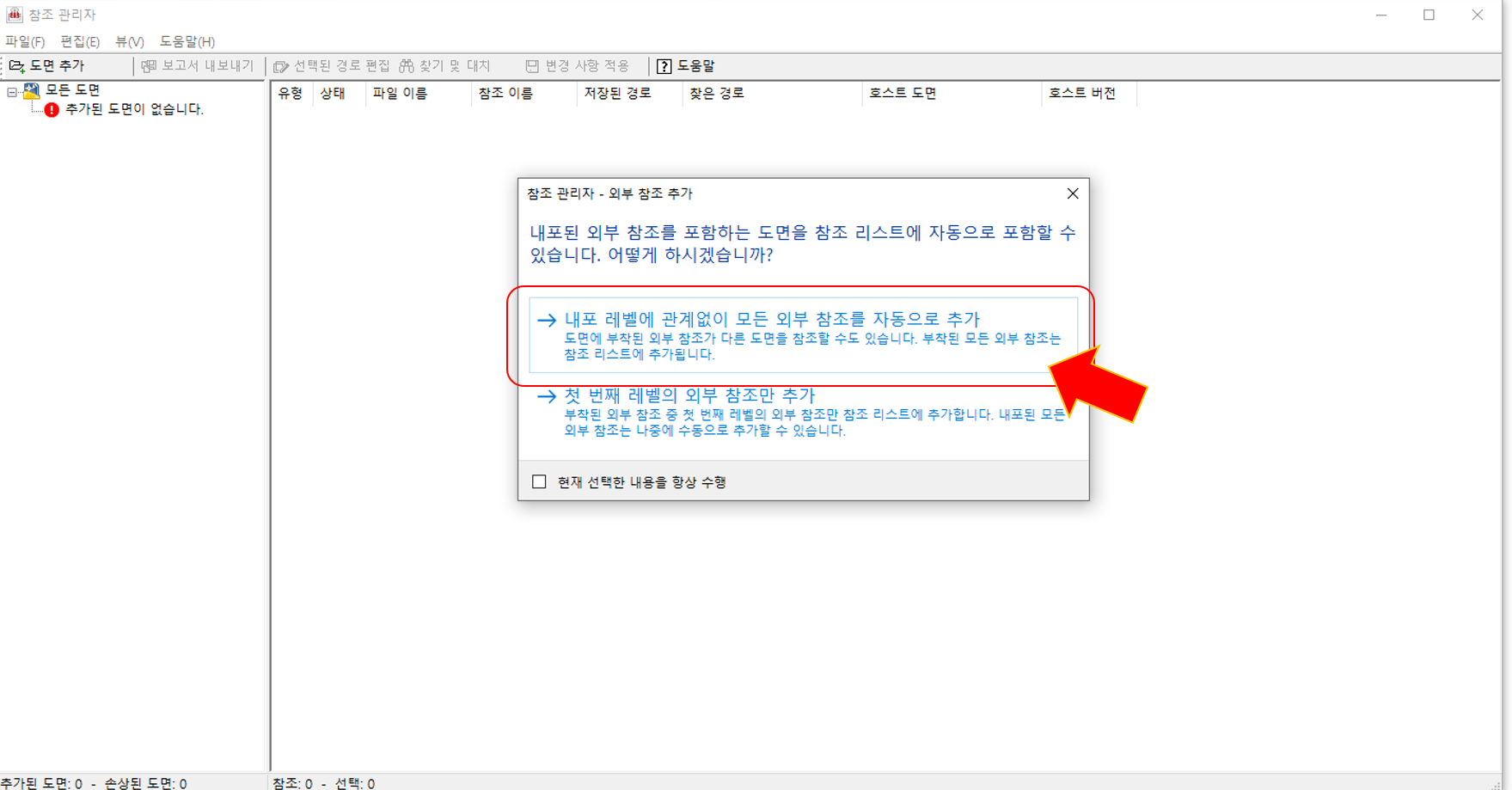 그럴 땐 참조관리자에 들어가서 세팅을 해주면 된다!