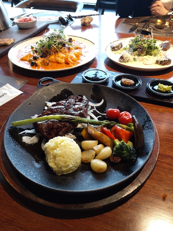 스테이크를 먹으니 너무 갭 차이가... ㅋ