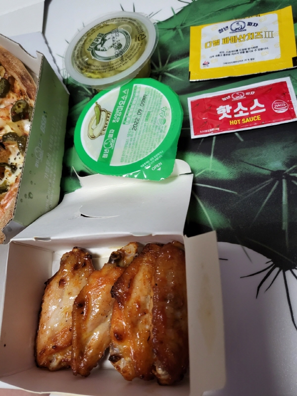 핫윙도 촉촉하고 매콤하니 맛있었다.