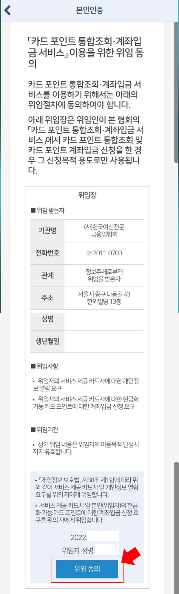 맨 하단에 위임 동의를 클릭!