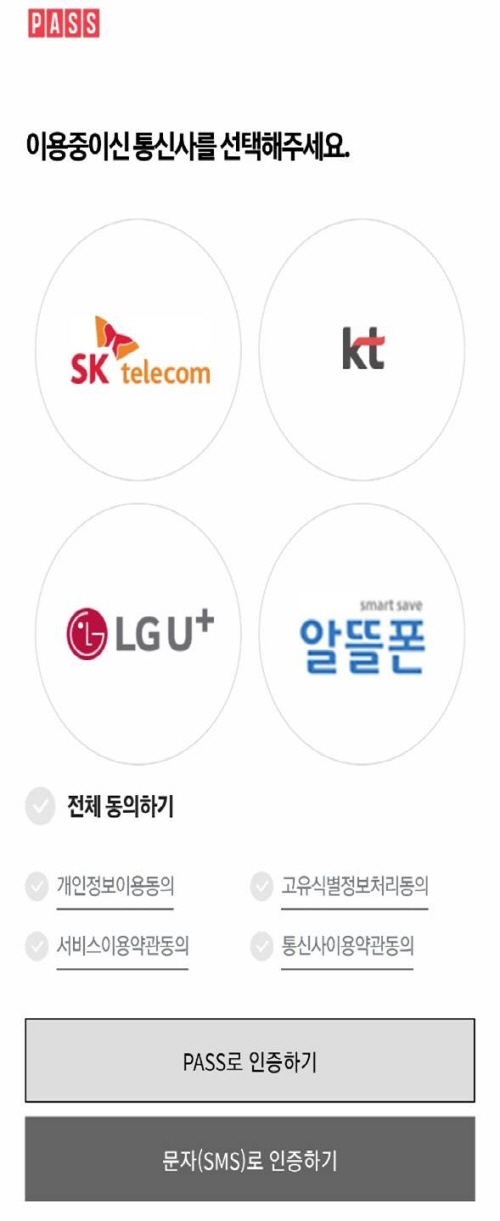 마지막으로 본인 확인 서비스 창이 뜨는데