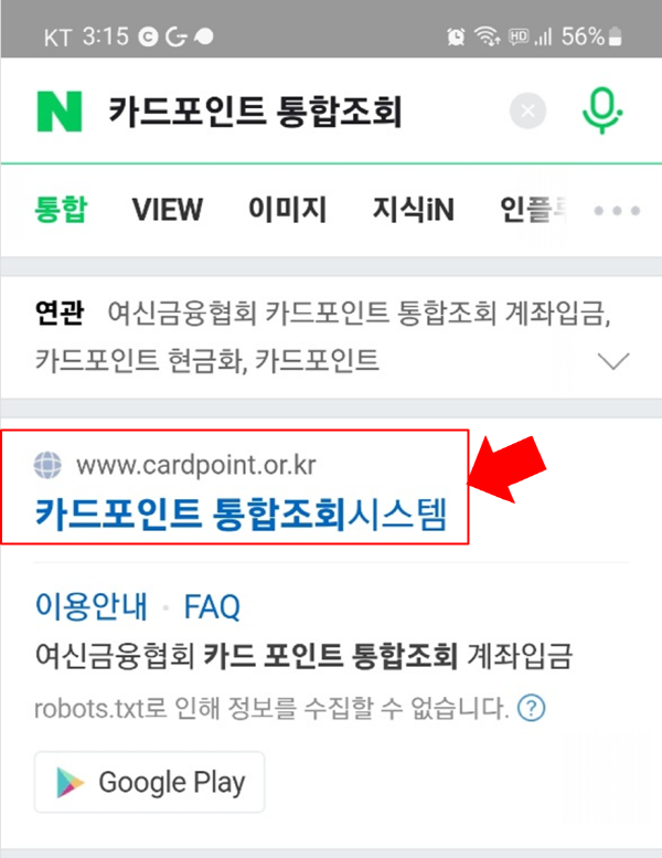 검색사이트에 카드 포인트 통합조회 라고 친다!