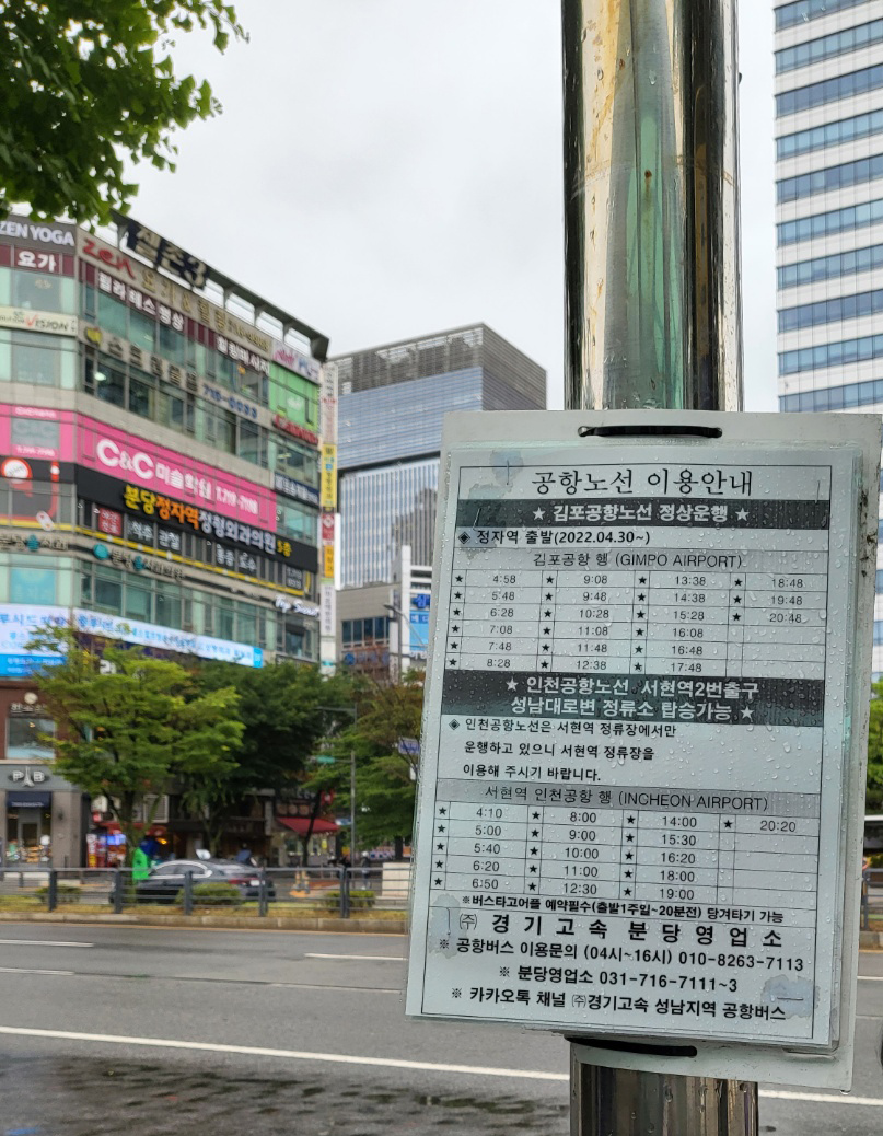 분당 정자역에서 김포공항가는 리무진 버스시간표 [2022.4.30~]