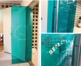 강화유리 벽체에 부착하는 안개시트(엠보시트, 에칭시트) 디자인!