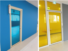 시안 중 하나가 투명 유리에 컬러 있는 시트지를