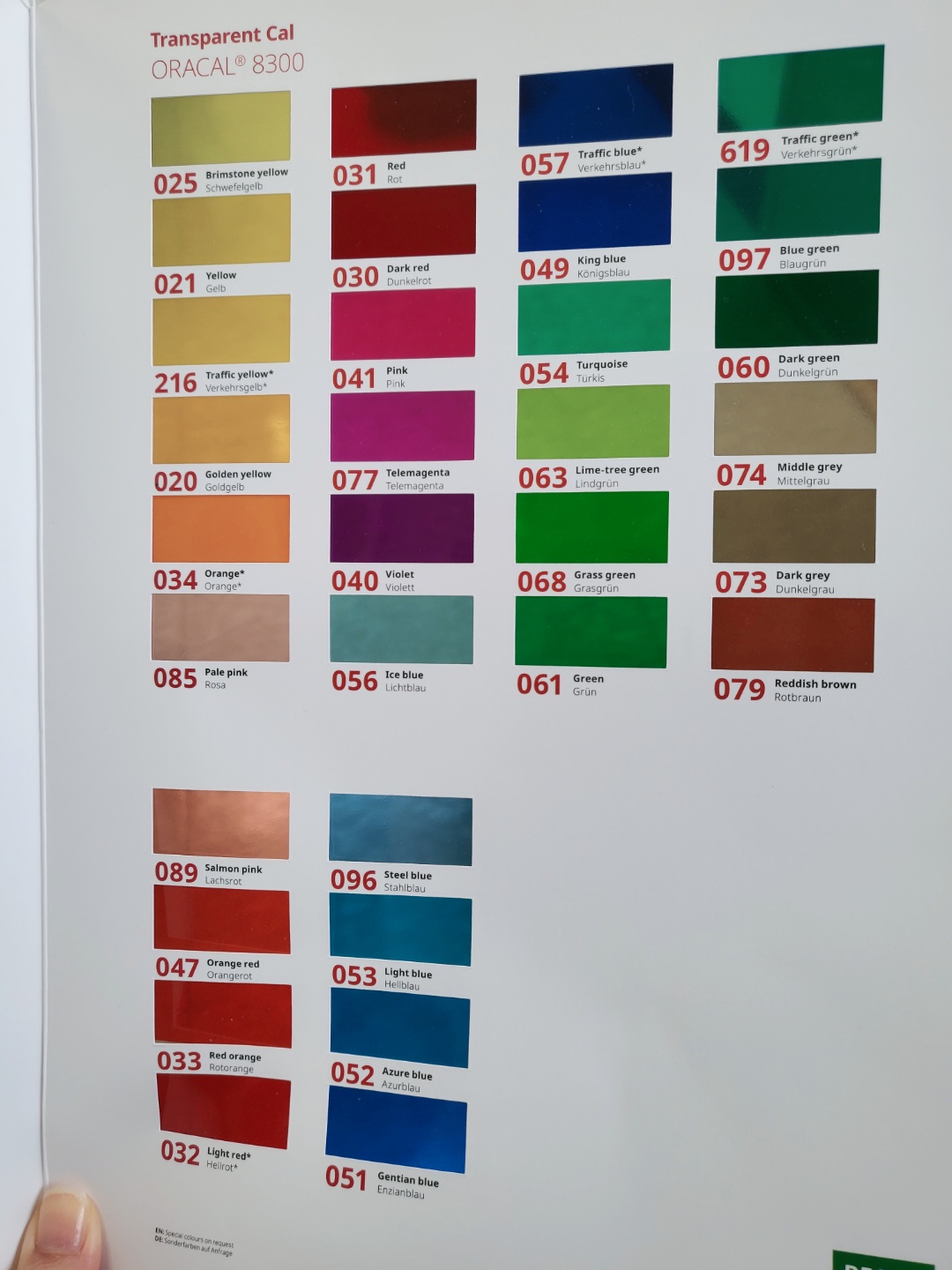 독일 오라폴(ORAFOL)사의 ORACAL 8300 투명컬러 시트지