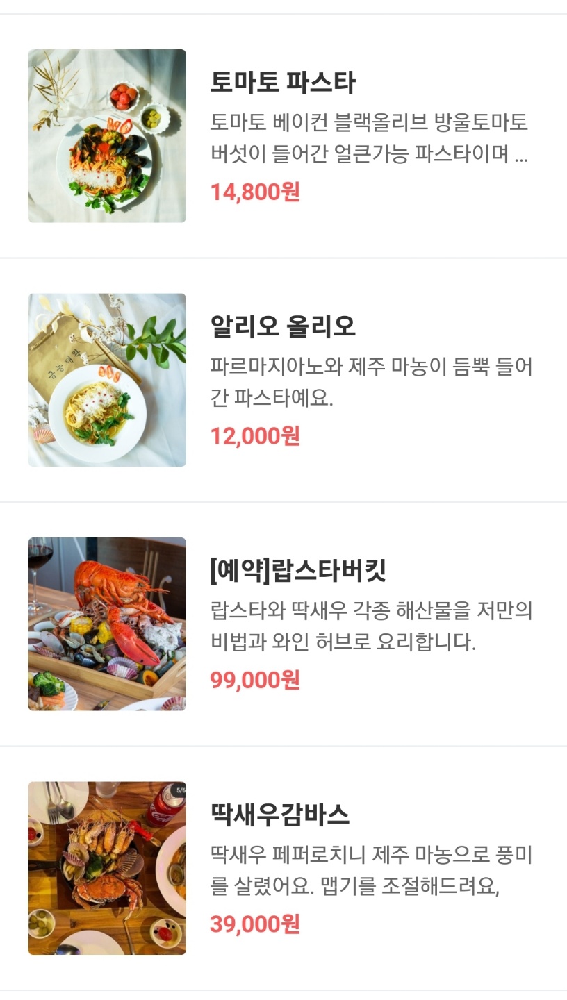 해산물, 파스타 등 메뉴도 다양해서