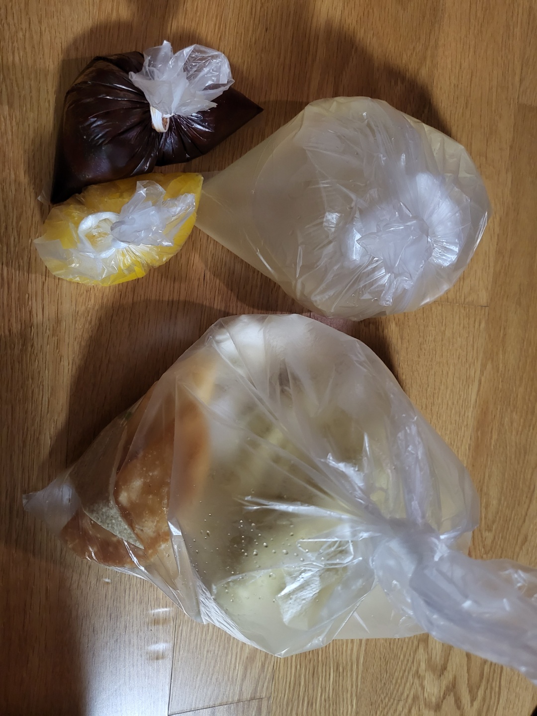 모든 재료들의 다 일회용 비닐팩에...