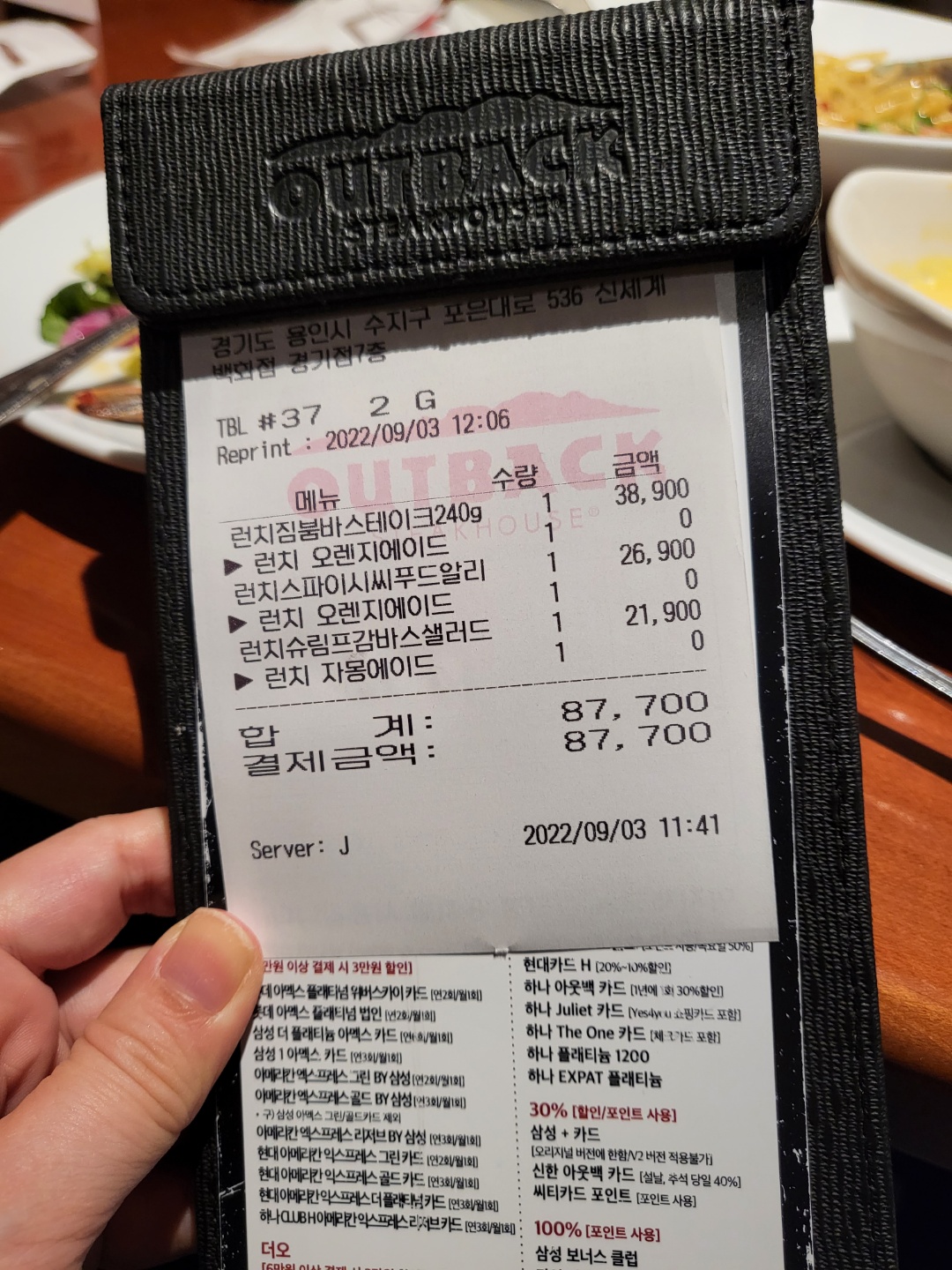 죽전 신세계 백화점 패밀리 레스토랑 아웃백 스테이크 다녀오다!