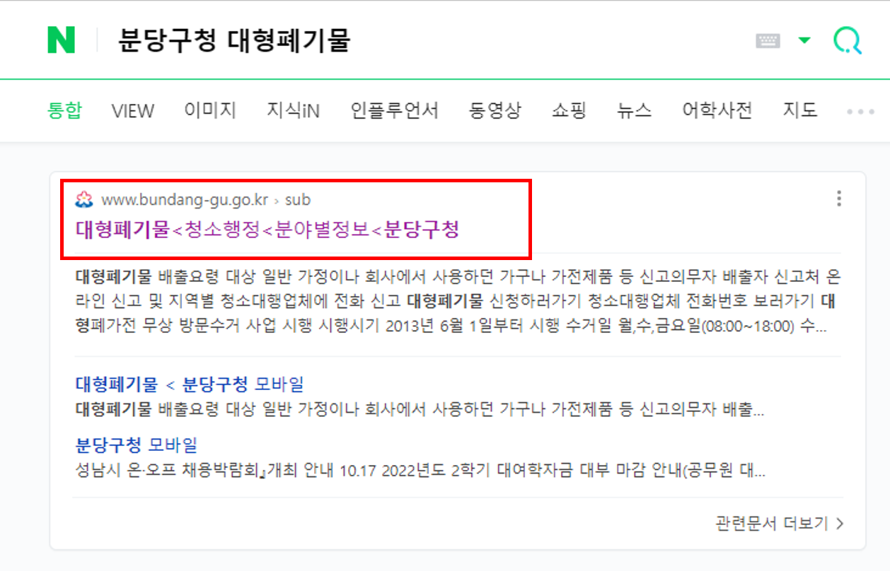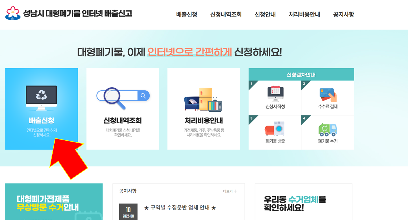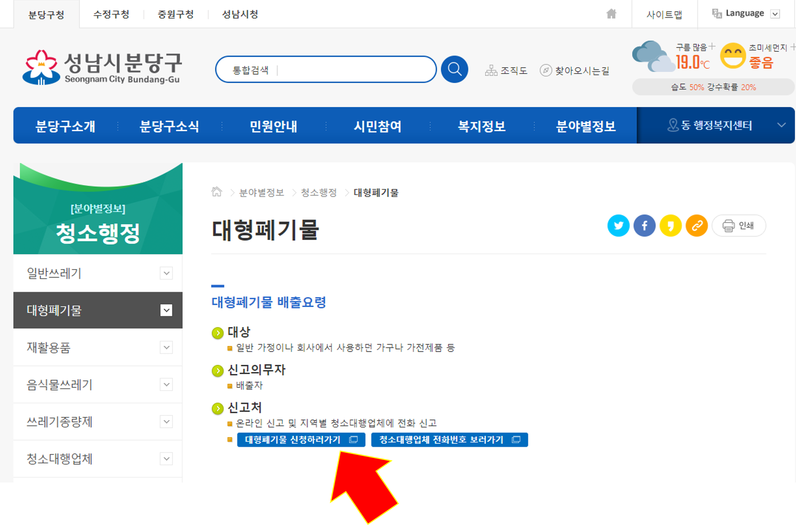 사이트로 들어가면 좌측에 대형폐기물 목록이 보이는데..
