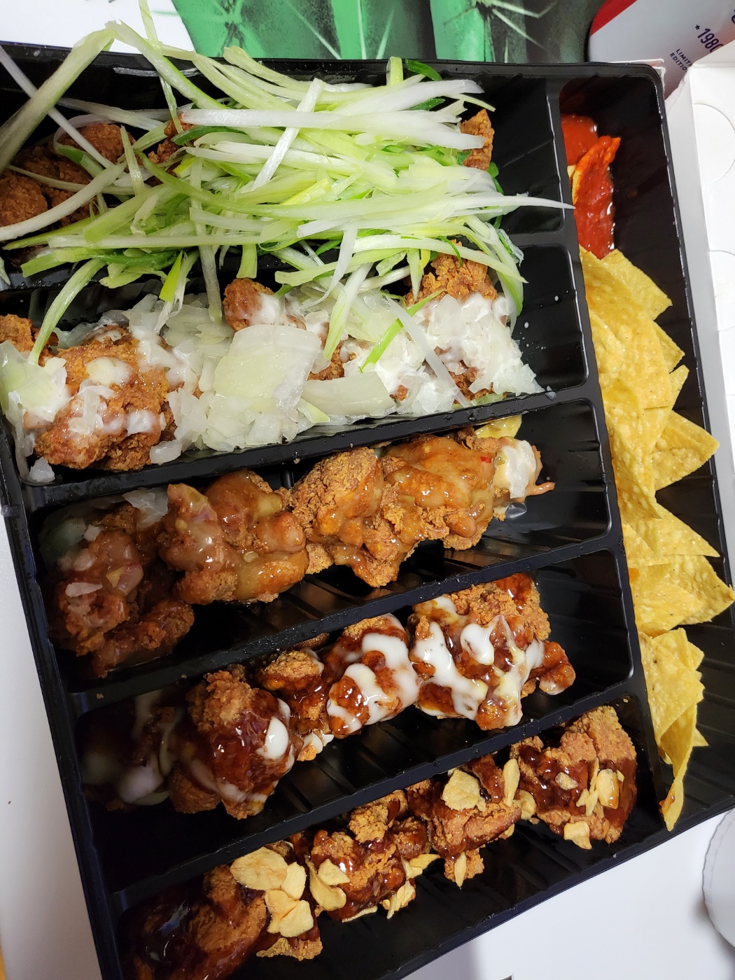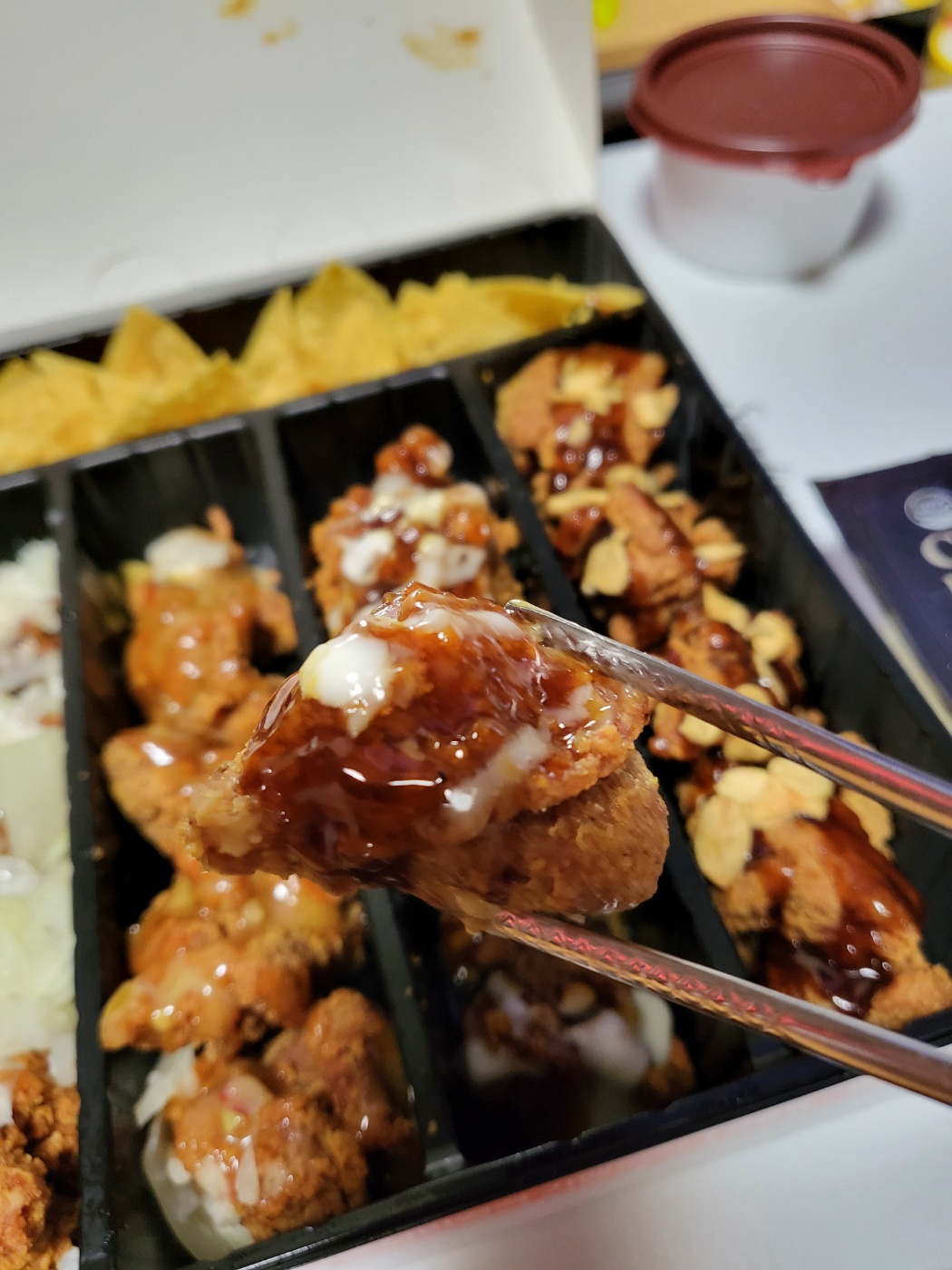 상단에 나초랑 하단엔 치킨이 맛별로 좌르르~!