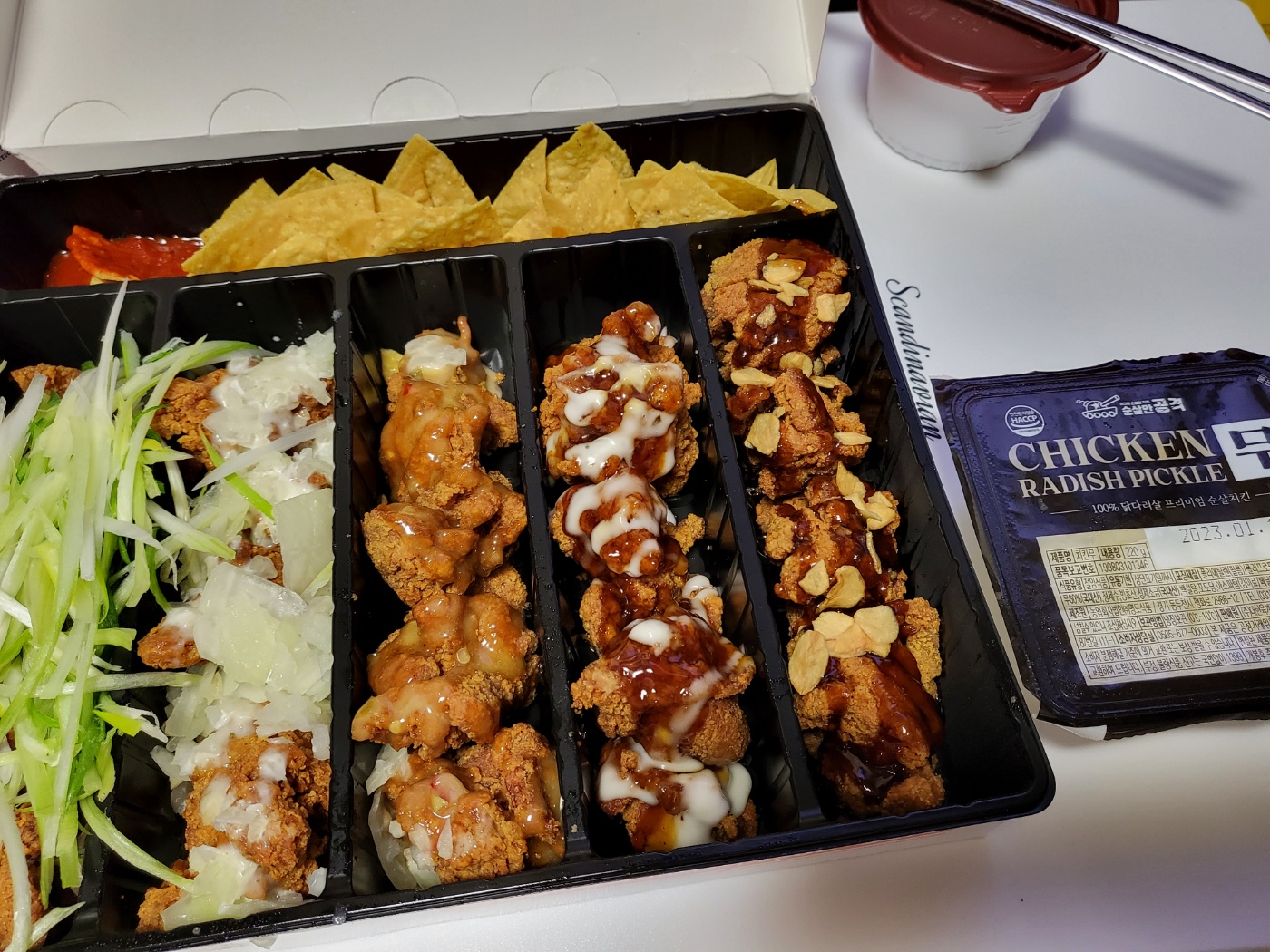 치킨에 여러 가지 양념이 있는 게 쫌 저기 했지만