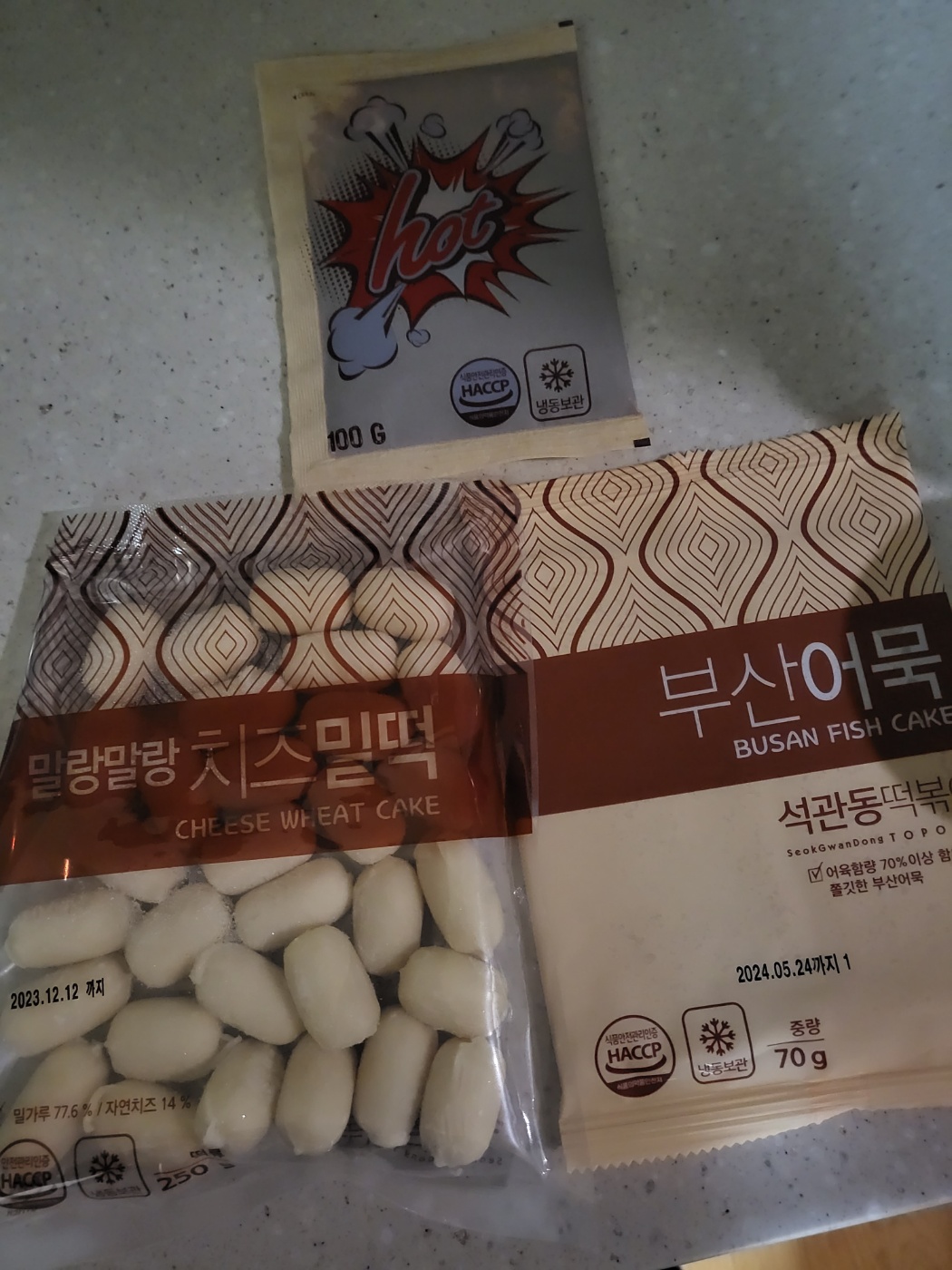 구성품은 치즈밀떡이랑 부산어묵, 그리고 소스!