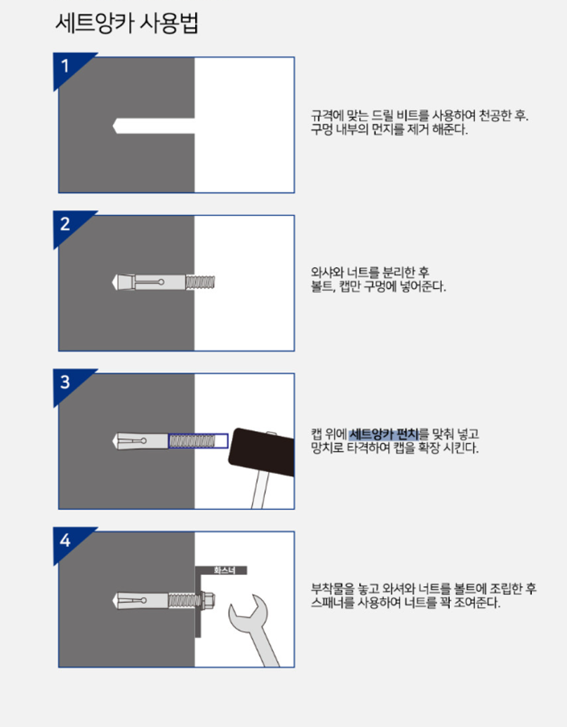 앙카펀치를 사용하여 펀칭에 의한 확장력으로 앙카가 고정