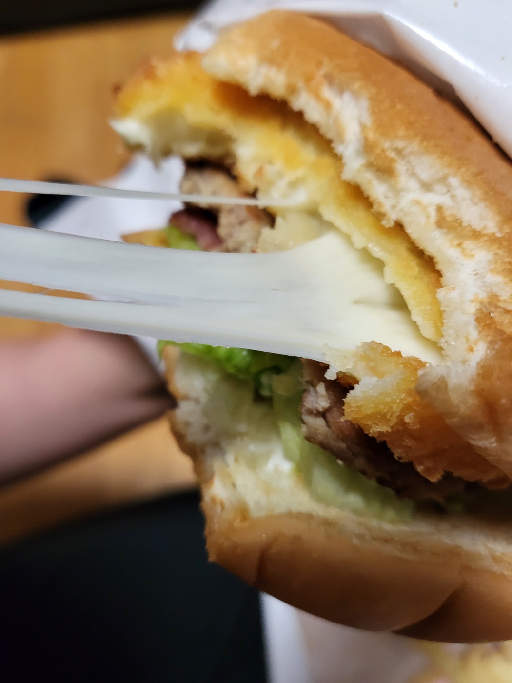 치즈패티, 고기패티, 베이컨, 양상추 끝~