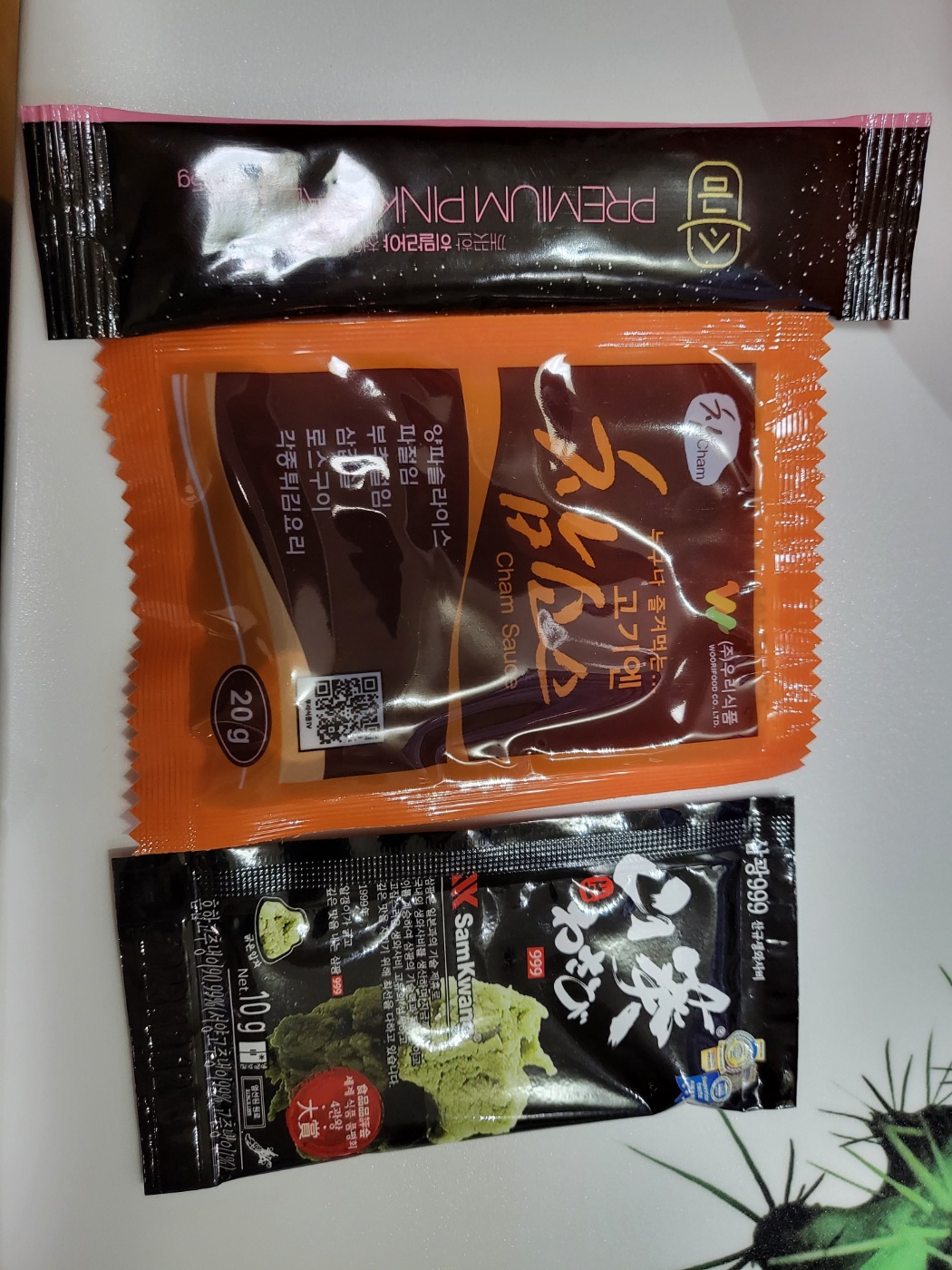 히말라야 천일염과 고기소스, 와사비도 들어있다,