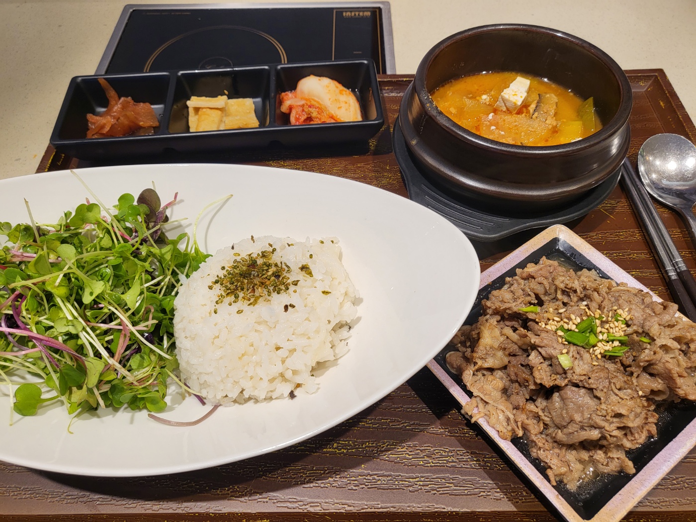 메인 밥과 된찌? 소불고기& 기본반찬 ㅋ