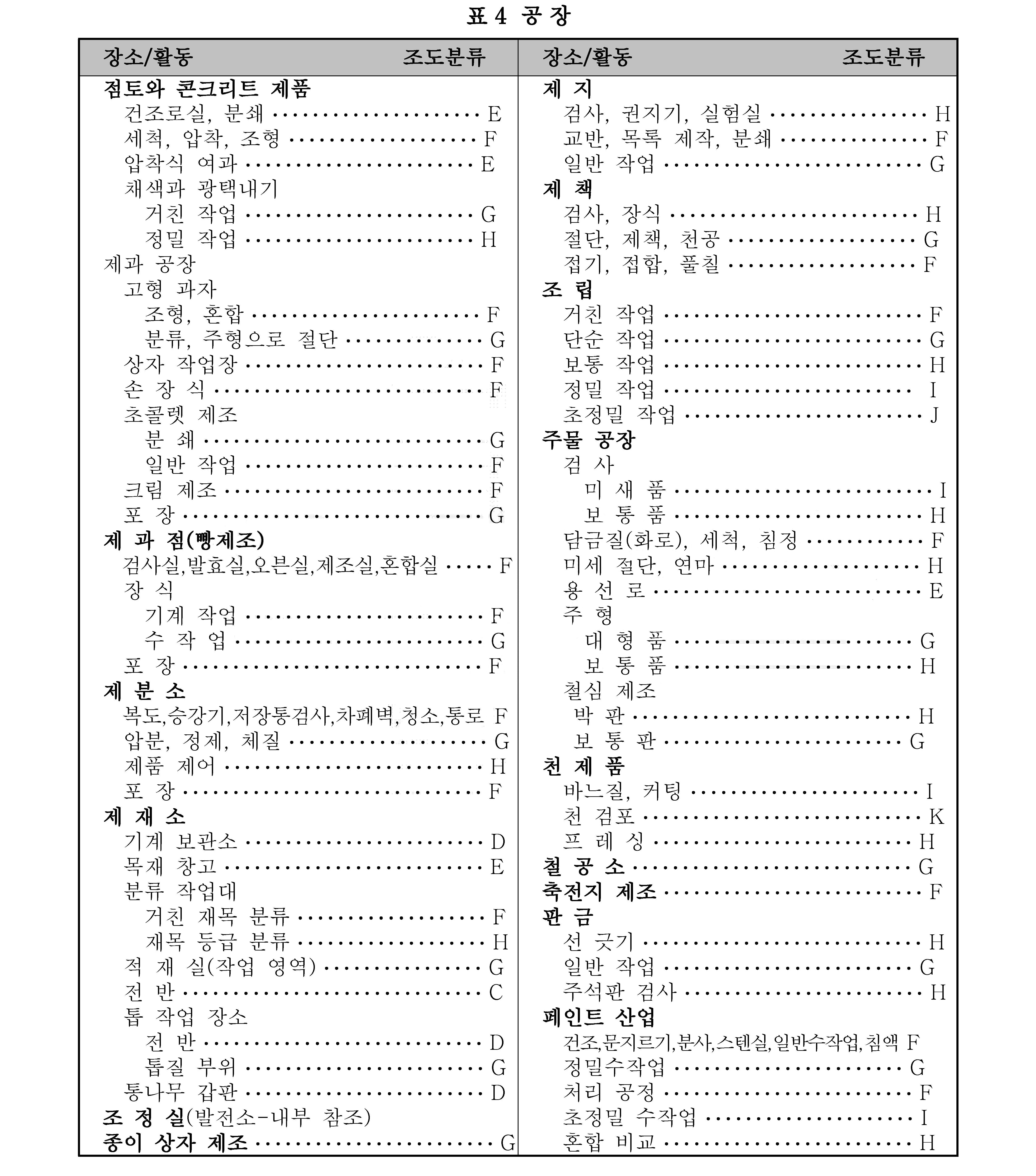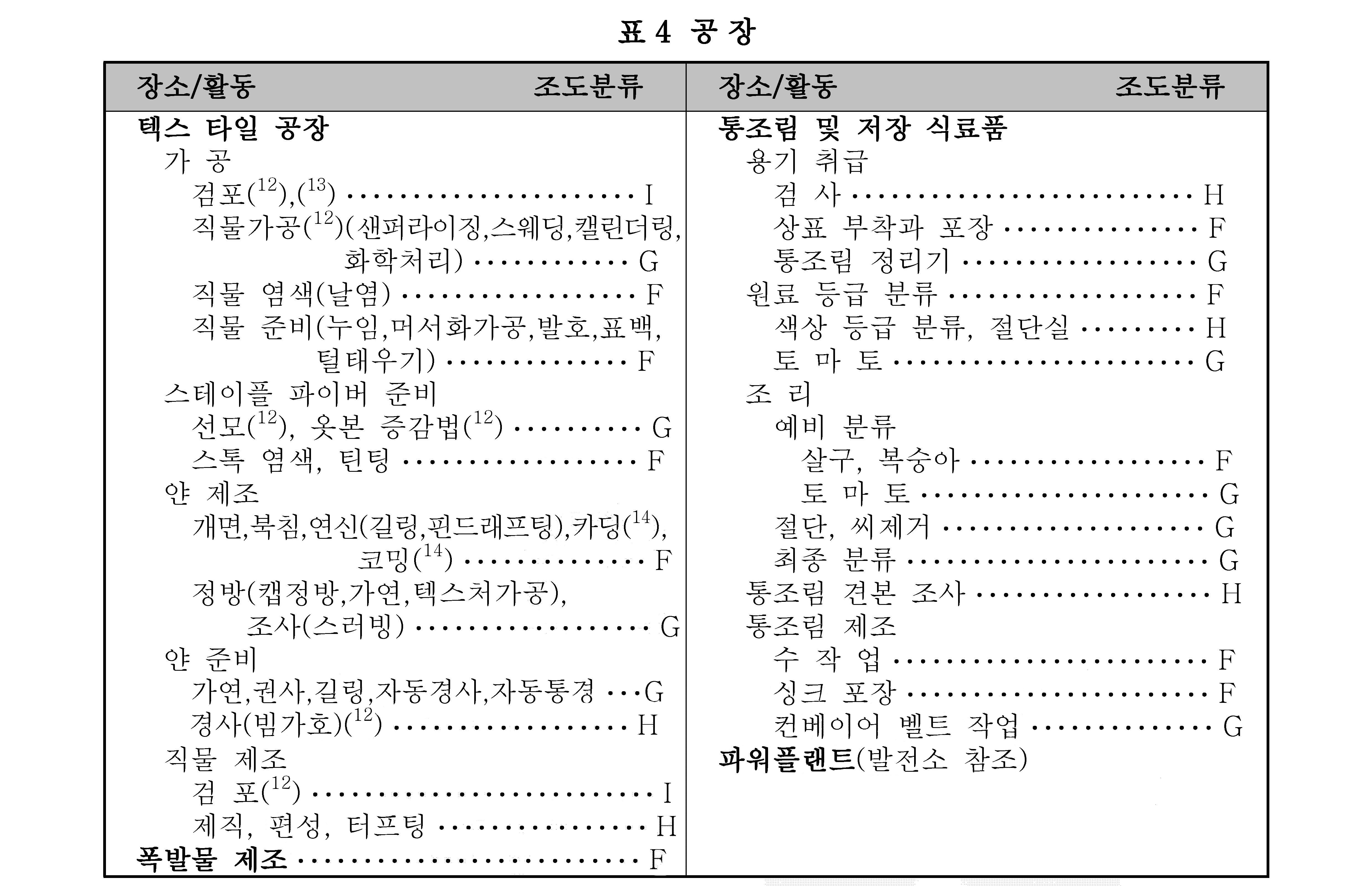 | 시작업이 빈번하지 않은 작업장 | E | 60 - 100 - 150 | |