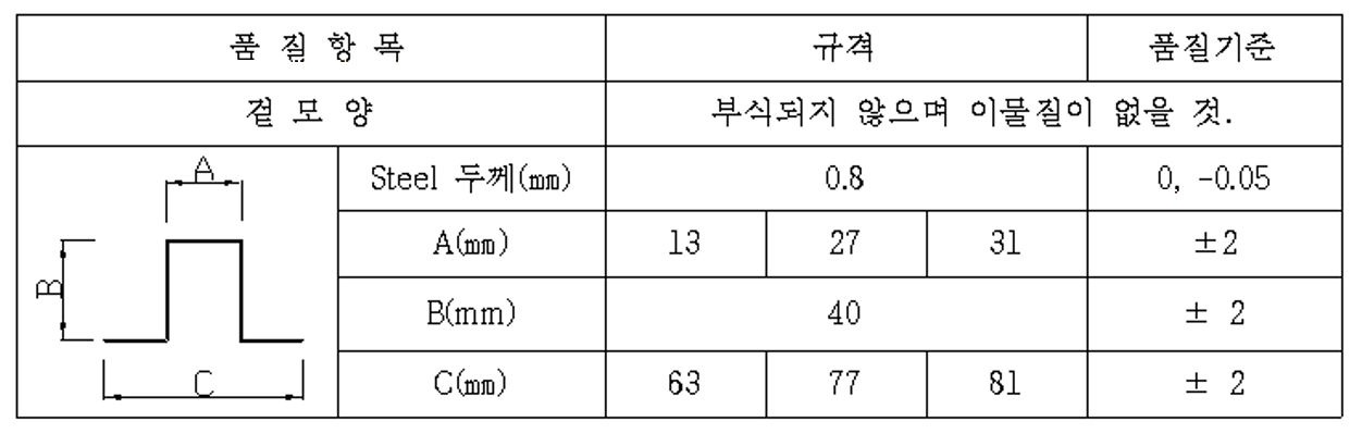| 항 목 | 보드 두께 (mm) | 적용규격 | |||