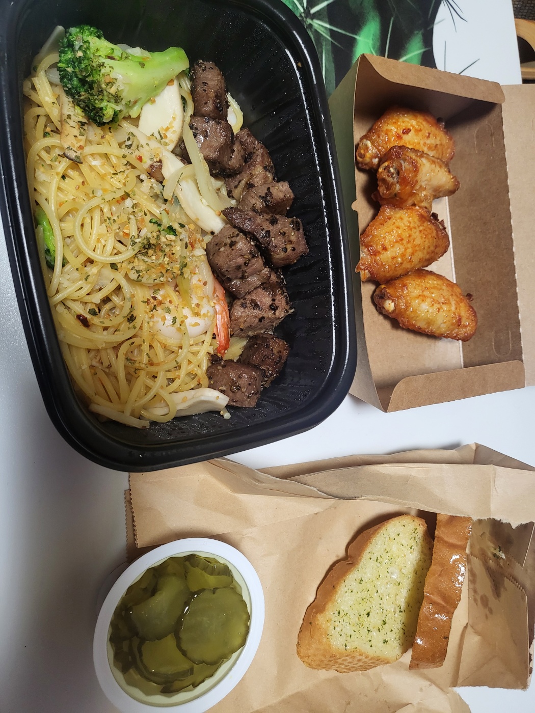 쉬림프 알리오 + 스테이크 추가 + 버팔로윙