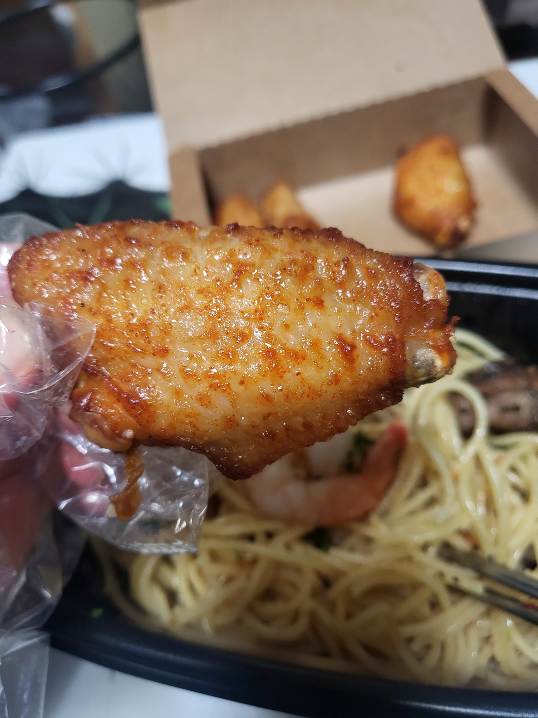 쉬림프 알리오 + 스테이크 추가 + 버팔로윙